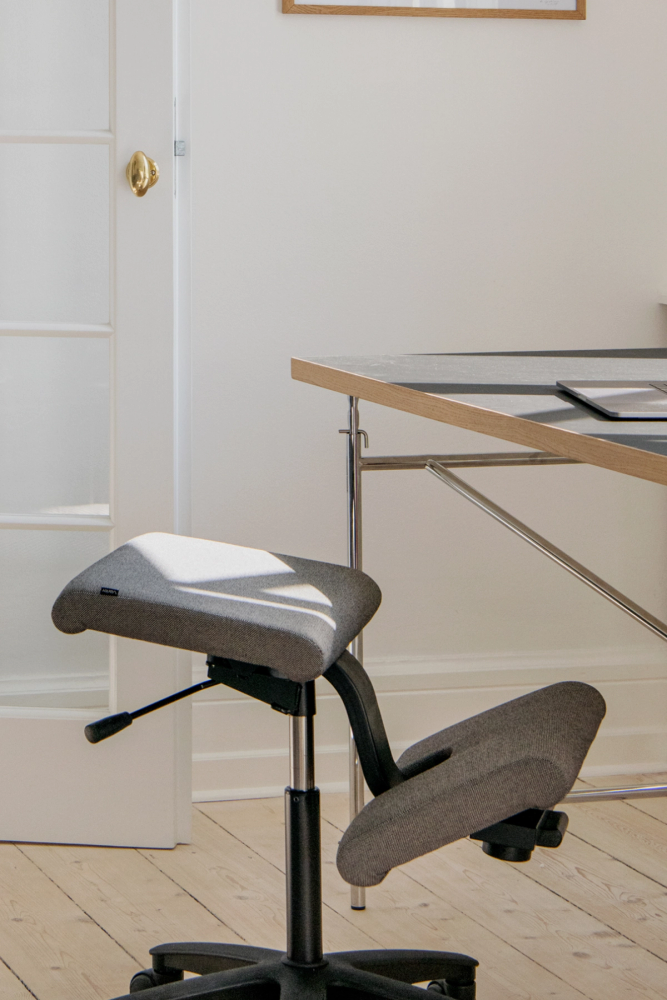 Wing™ is a kneeling chair designed for the workspace. Its angled seat allows for an open hip angle, promoting an upright posture where the neck, shoulders, and spine are aligned. With a swivel base and wheels for easy mobility, Wing™ helps you stay comfortable and focused throughout the day.